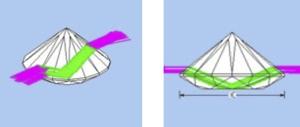 光线从顶部射入台面和冠部刻面,并应沿短几何轴在内部传播。
