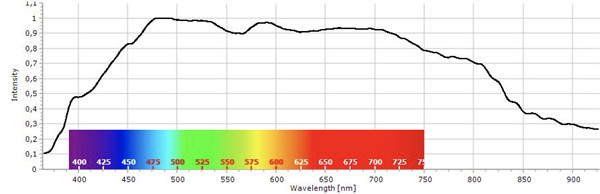 该灯在 400 至 700 nm 的可见光范围内具有连续的宽带强度功率。