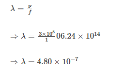 答案:给定,光的频率 = 6.24 x 1014Hz