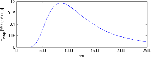 我们使用的校准源是250W卤素灯, 校准可追溯至 德国计量研究院(PTB) 的绝对辐照度输入:E 输入:l 一个 输入:m 输入:p 输入:(λ)在30厘米的距离上,如图所示。