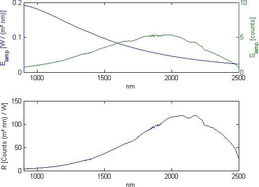 哪里输入:S输入:l一个输入:m输入:p输入:(λ输入: n)是用分光仪测量的原始光谱(即分光仪的“计数”)和输入:E输入:l一个输入:m输入:p输入:(λ输入: n)校准灯的 Irradiance 光谱通常需要重新插值到光谱仪网格上。λ输入: n输入:.