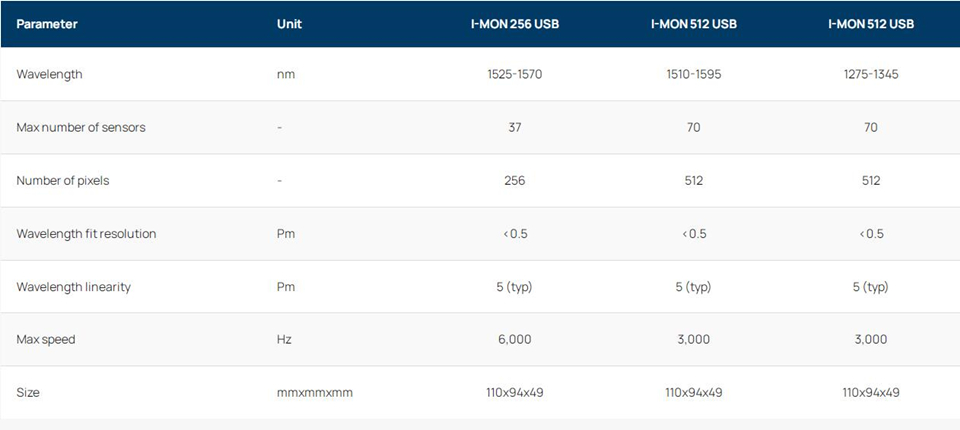I-MON USB 是一系列坚固耐用的高性能询问显示器,可与客户选择的光源即插即用。EMC 屏蔽外壳和强化光纤使 I-MON 非常坚固耐用,非常适合工业应用和实验室类型的实验。I-MON 256/512 USB 是我们在 I-MON 256/512 OEM 基础上推出的新系列,配有高速 USB 接口,可进行实时千赫兹测量。I-MON 256 USB 和 I-MON 512 USB 使用相同的电气接口,因此可以方便地使用相同的软件来控制这两款设备。