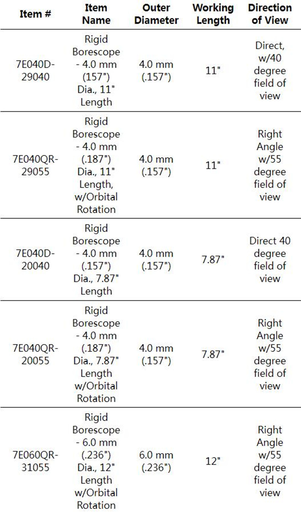 因此,内窥镜能让您在暗腔内更远的距离上更清晰地观察物体,色彩保真度高。我们在使用 N.I.S.T. 分辨率目标进行的测试中获得了尽可能高的分辨率分数,证明了这一点。有多种探头(直探、前斜探、侧探或后仰探)、放大倍率和视场(直径从 1 毫米到 14 毫米,长度从 3 英寸到 144 英寸)可供选择。所有 Lenox 硬质内窥镜都有完整的光源、附件、相机和视频适配器、观察头和监控设备可供选择。