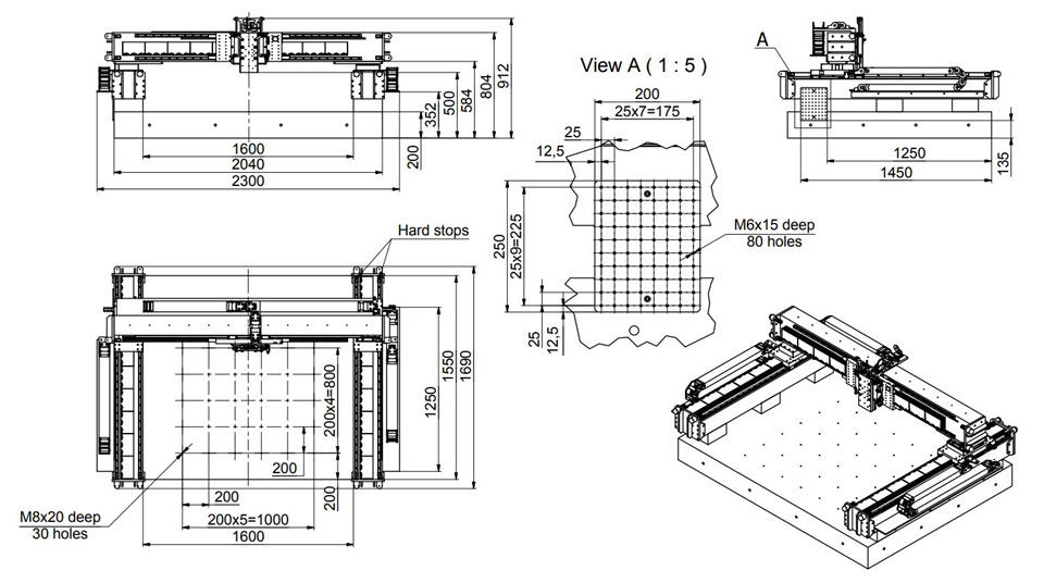 定位范围 XY - 1000 x 1300 mm,Y - 90 mm