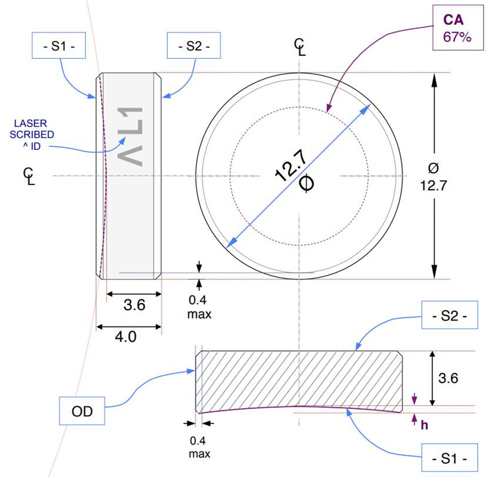 表面平整度:S2 λ/10 P-V(0.2 条纹),波长 633 nm,在 CA 上