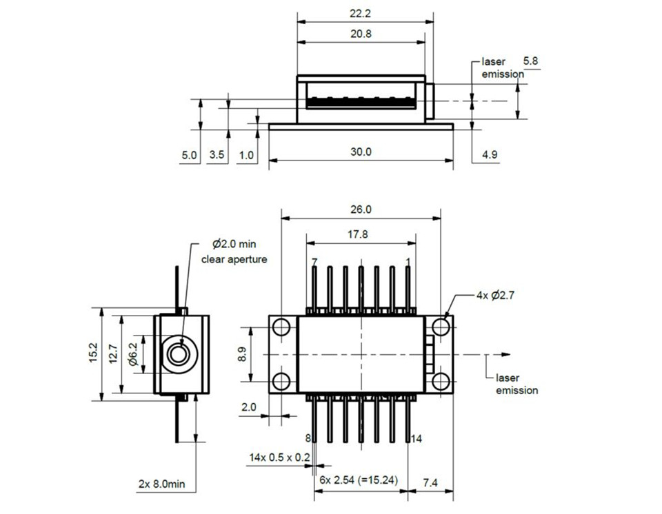 超过额定值的应力可能会损坏激光器。请注意,虽然没有达到大电流,但可能会出现损坏性光功率水平。这些仅是应力额定值,并不意味着在这些条件下或超出 "建议运行条件 "下所示的任何其他条件下都能正常运行。
