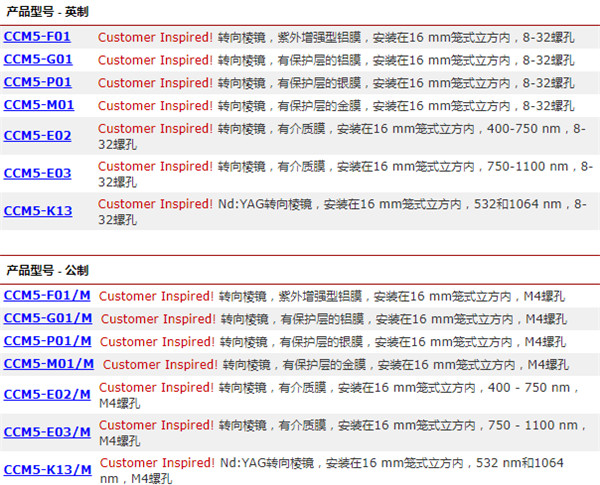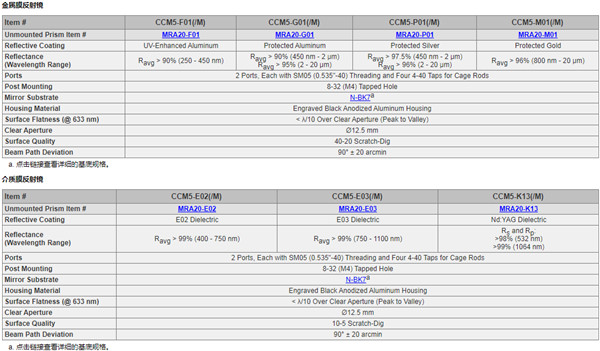 THORLABS转向棱镜CCM5-F01(/M)
