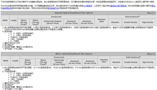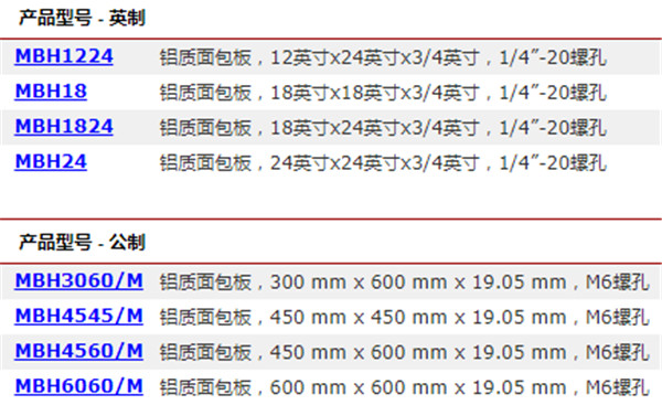 Thorlabs也提供双倍密度螺纹孔铝质面包板,螺孔中心间距为1/2英寸,所以孔密度加倍。这些面包板的尺寸从4英寸x 24英寸到8英寸x 36英寸(100 mm x 600 mm到200 mm x 900 mm),厚度为0.5英寸(12.7 mm),外形纤薄,是紧凑工作空间的理想选择。我们的圆形面包板也提供相同的双倍孔密度阵列。