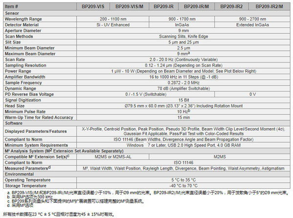 基于BP209光束质量分析仪的完整M2测量系统通过将下面出售的光束质量分析仪与波长兼容的扩展装置集成就可以搭建。基于BP209系列测量头的完整M2测量系统的组件可以在提供的产品中购买,而有关Thorlabs M2测量系统,以及配置和购买基于BP209或BC106光束质量分析仪系统的所有信息,请看M²测量系统页面。