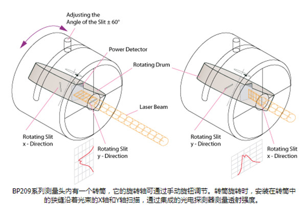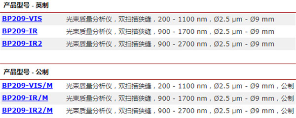我们提供三种型号的双扫描狭缝式光束质量分析仪。BP209-VIS(/M)用于200 nm - 1100 nm,BP209-IR(/M)用于900 nm - 1700 nm,而BP209-IR2(/M)的使用波长范围是扩展的近红外波段,即900 nm - 2700 nm。所有型号都有一个Ø9 mm的入射孔径,通过连续扫描两个宽度相同且互相垂直的狭缝进行测量。使用软件切换5 µm或25 µm宽的狭缝对、选择扫描狭缝或刀口工作模式、设置其它扫描选项等。有关不同狭缝宽度和工作模式的功能和用法信息,请看工作标签。