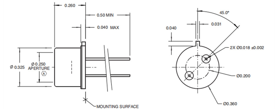 光电二极管SVF系列红外(IR)发射器设计用于黑体辐射的脉冲源。可脉冲发射器中的辐射元件是超薄光电二极管专用金属箔,该金属箔被配置为使得来自加热箔两侧的辐射沿着光轴被有效地引导出封装。箔材料具有0.88的典型发射率,并且在光谱分布上与黑体源非常相似。SVF系列发射器设计为在1000 K的额定高箔片温度下工作。标准SVF系列发射极采用各种箔片厚度和宽度的密封to-5或to-8封装。几种标准窗口材料可用于将输出调整为感兴趣的特定波长范围。SVF系列发射器配有集成反射器。标准抛物面反射器提供近乎准直和均匀的辐射输出。具有不同焦距的各种椭圆反射器也可用于耦合到光纤或其他应用中。