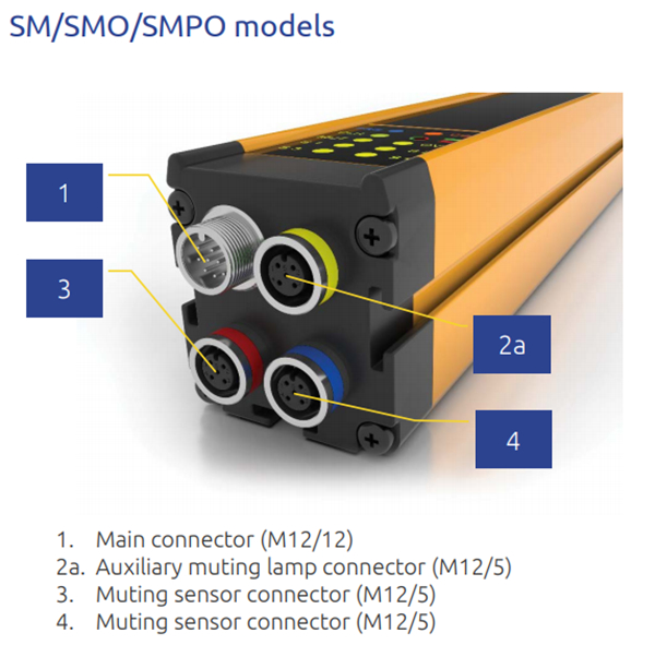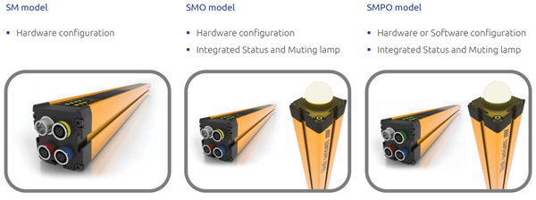 • 硬件可配置模型 (SM/SMO) 允许通过主连接器接线配置屏蔽逻辑和功能参数