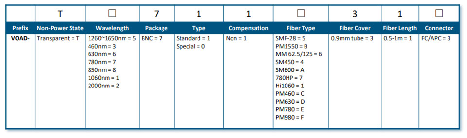 • 通过施加 0 至 8 V 信号来控制光功率
