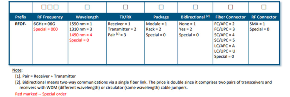 需要一对相同波长的发射器和接收器才能在光纤上形成 RF 链路。需要两对发射器和接收器才能在单根光纤上形成双向 RF 链路,其中使用 WDM 光纤跳线(1550nm 和 1310nm)或循环器光纤跳线(相同波长)。我们提供这些 3 端口电缆,可直接插入发射器、接收器和传输光纤线路。