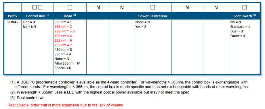 这款紫外线 LED 聚光灯的输出功率密度超过了传统的汞紫外线灯,是市场上功率更大的设备。它充分利用了多年的军用紫外线设备研发成果,是专为大众市场设计的坚固耐用的制造工具。紫外线聚光灯具有环氧树脂固化速度快、固化深度大、连续工作时间长、照明均匀、体积小、使用方便和使用寿命长等特点。手持式紫外线灯可通过手指按键或脚踏板开关。照明时间可通过计时器设定,并显示在前面板上。照明功率可通过前面的旋转钮在 10% 到 99% 之间调节。光学镜头设计用于准直和聚焦,光斑大小可调,直径从 4 毫米到 50 毫米不等(功率密度相应减小)。四光头箱中的计算机控制器与单光头兼容,可通过 USB/GUI 设置定时器和功率。我们还生产适合灯头尺寸的光功率计,确保准确测量功率水平。请勿直视紫外线,以免伤害眼睛。我们提供多种护眼配件,包括眼镜、紫外线头戴式防护罩和大型透明板防护罩。