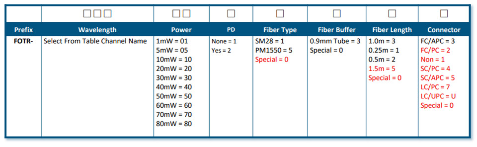 FOTR 系列光纤发射器将高速电信号转换为激光输出,具有好的模拟线性度、宽带宽和高动态范围。FOTR 系列光纤发送器采用密封式 14 针蝶形封装,具有热电冷却器以确保波长稳定、带反馈控制的内部功率监控器以确保恒定的输出功率,以及光隔离器以防止反射尖峰。它们采用砷化镓量子阱结构,光栅与 ITU 网格对齐,支持通过单根光纤进行多通道传输。每台设备都经过严格测试,以确保性能。