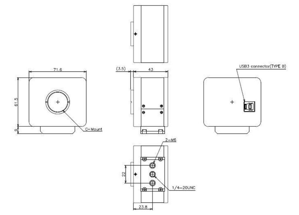 外形尺寸(宽×高×深):71.6 × 61.5 × 43 mm,不包括镜头和三脚架支架