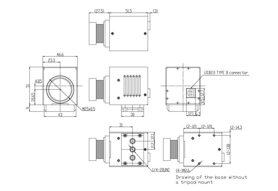 尺寸(W×H×D):46.6 × 51 × 51.5 mm;不含镜头和三脚架支架