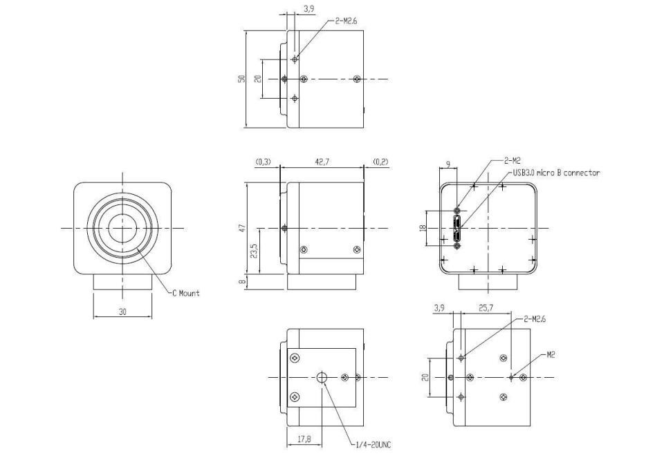外形尺寸(宽×高×深):50.0×47.0×42.7 mm,不包括镜头、三脚架支架和投影仪