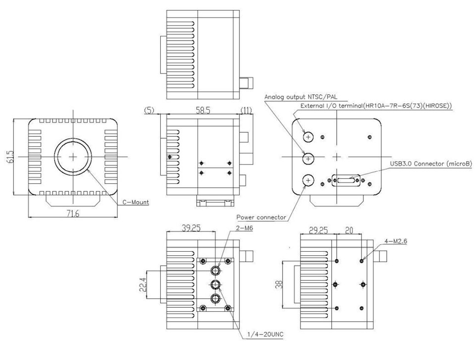 外部尺寸(W×H×D):71.6×61.5×58.5 mm;不包括镜头、三脚架支架和电缆 *不包括镜头、三脚架支架和电缆