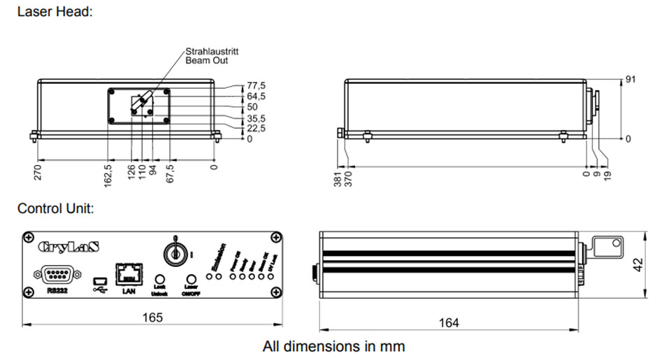激光头尺寸:91 x 270 x 379 mm³(高 x 宽 x 长)