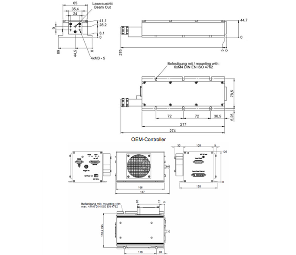 激光头尺寸:217 x 65 x 45 mm