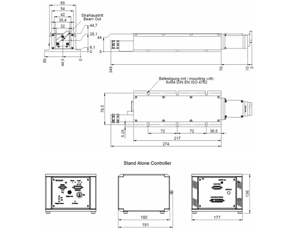 基于 CryLaS 的开发成果 DSS1064 高功率激光器,我们设计了整条产品线。该激光器发射低频,频率从 20 Hz 到 100 Hz 左右,就控制器和激光头尺寸而言,比在其基础上开发的 Q 激光器略大。但是,高功率激光器提供更高的单脉冲能量。气密舱内是非线性光学元件,可产生 1064 nm 基频的倍数。频率加倍、三倍、四倍和五倍最终可产生宽带激光波长光谱,可通过此概念生成: