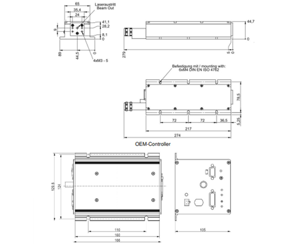 激光头尺寸:217 x 65 x 45 毫米