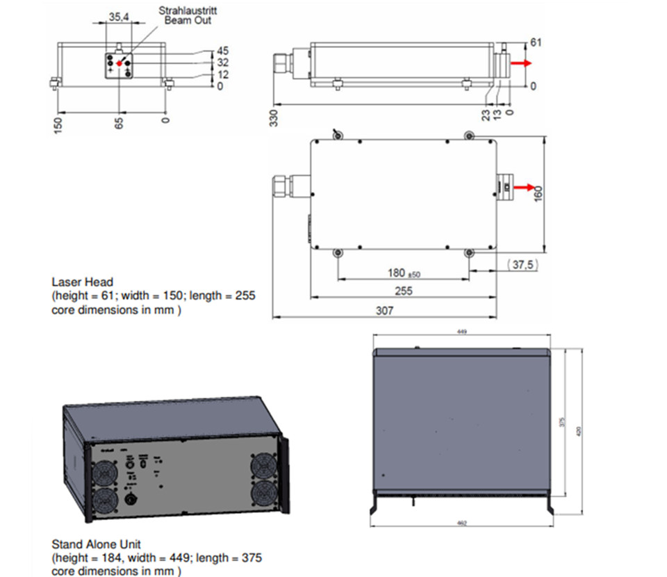 激光头尺寸:61 x 150 x 330 毫米(高 x 宽 x 长)