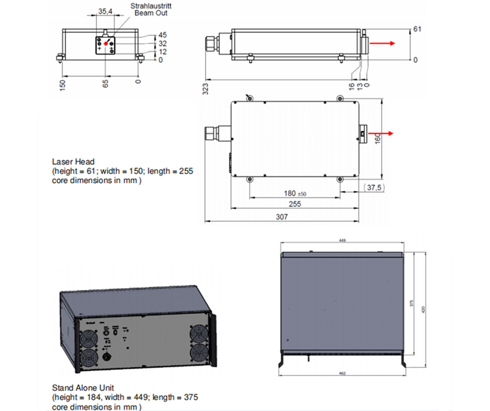 激光头尺寸:61 x 150 x 323 毫米(高 x 宽 x 长)