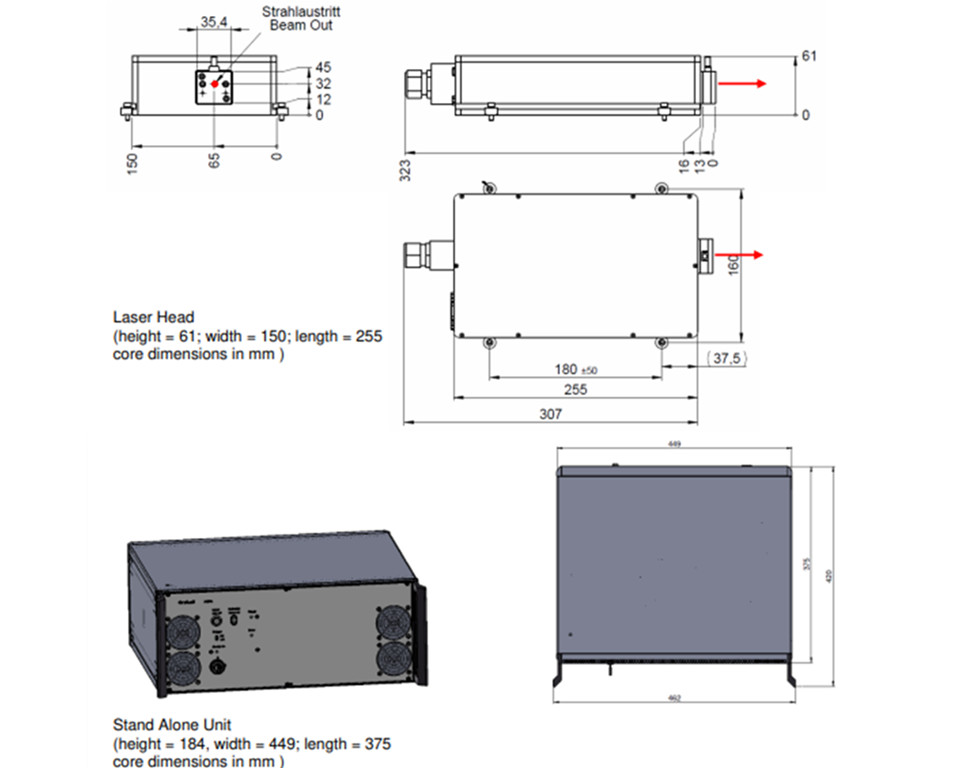 激光头尺寸:61 x 150 x 323 毫米(高 x 宽 x 长)