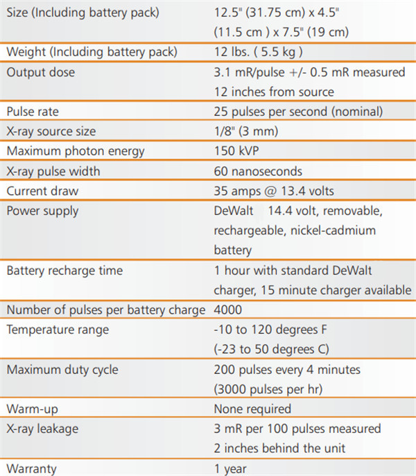 XR200 是一种 150 kV、电池供电的脉冲 X 射线发生器,用于安全和轻工业应用。Golden Engineering 于 1997 年推出 XR200,作为 THE INSPECTOR X 射线Model 200 的替代品。