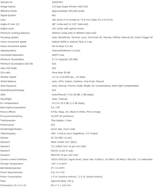 JENCAM变焦相机FCB-EX48CP-FG是一款具备216倍总变焦能力、高灵敏度成像和智能控制功能的工业级模拟摄像机,适用于安防监控、工业检测等场景。