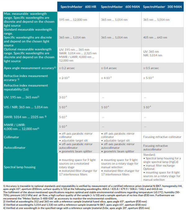SpectroMaster 600 MAN 使用镜面光学器件,因此保留了准直器和自准直器不必在整个可测量光谱范围内重新聚焦的优势。灯更换轮、测角仪和样品台可以手动操作,用户在软件支持下完成测量程序。该测量系统在折射率测量方面实现了良好的精度,因此是全自动 SpectroMaster 600 HR 的替代品,对可测量光谱范围和测量速度的要求较低。