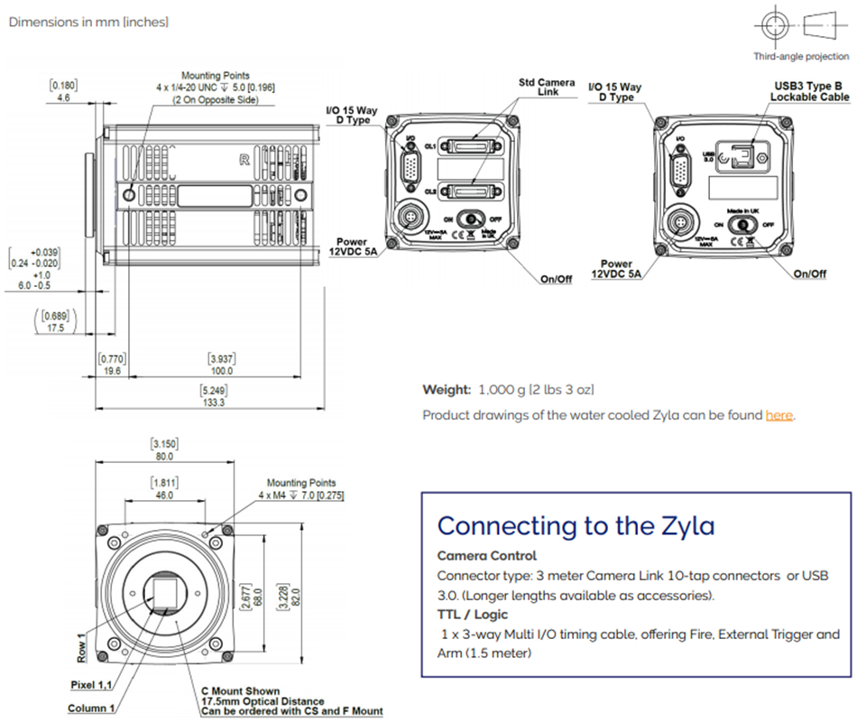 Zyla 提供“10-tap”Camera Link 以获得更大的持续帧速率。