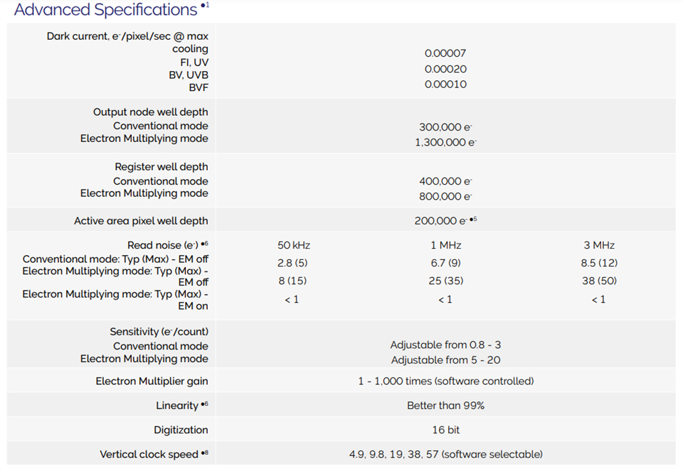 • 双输出放大器:软件可选择传统 CCD 输出(低光)或电子倍增输出(超低光)