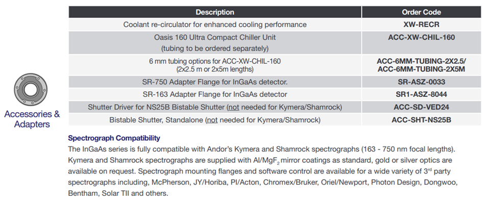 Andor 的 iDus InGaAs 2.2 阵列探测器系列为高达 2.2 µm 的光谱应用提供了优化的平台。 TE 冷却的真空传感器达到 -90°C 的冷却温度,可以实现更合适的信噪比。实际上,在场景黑体辐射占主要地位的 -90°C 以下,暗电流将适度改善,而传感器的量子效率将在这些较低温度下受到很大影响,并导致较低的信噪比。