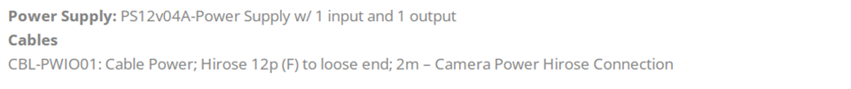 电源:12 V DC (6 V - 30 V),2.5 A 浪涌 (CLM); CoaXPress (CXP) 供电