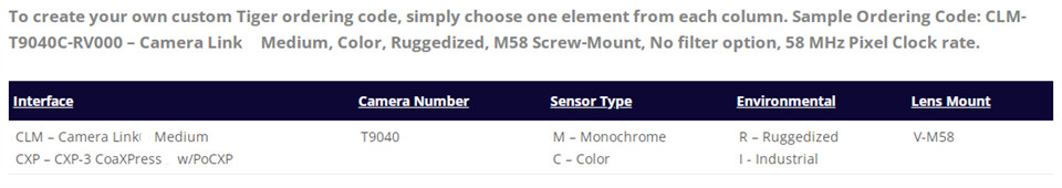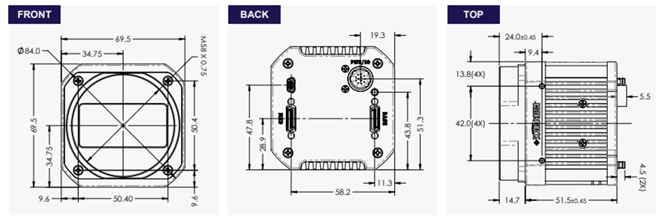 接口:Camera Link 中型,底座(仅 40 MHz 可选); CXP-3 CoaXPress w/PoCXP