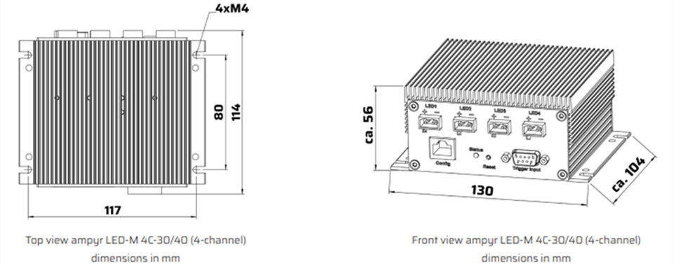 这款四通道数字控制器适用于控制 LED 和 LED 组。它能够对每个通道的 LED 电流、脉冲长度和延迟进行准确调节,调节范围宽广。此外,每个通道的工作模式(关闭、常亮、跟随和脉冲外部、重复或单次)也可独立选择。