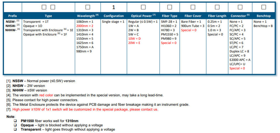 NanoSpeed 1×1系列光纤开关是快速快门器件,具有低损耗、快速响应和高光功率处理能力。这得益于我们的非机械结构和固态全晶体设计,无需机械运动和有机材料。我们的光纤开关旨在满足严苛的开关要求,即高可靠性、快速响应时间和连续开关操作。该开关是双向的。它本质上是双向的,可根据光纤类型选择偏振无关或保偏模式。