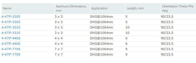 KTP是Nd:YAG激光器及其他钕掺杂激光器倍频常用的材料,尤其适用于低至中功率密度应用。