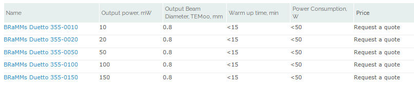 作为变体型号,该激光器还提供349纳米波长的输出版本。Duetto-349的光输出功率高可达200毫瓦。