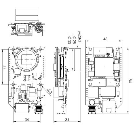 采用一套多功能的中端赛灵思Zynq 7020 FPGA开发算法并实时处理数据。图像采集通过AMS传感器实现,可选配CMV2000(2048x1088像素,2/3英寸规格)或CMV4000(2048x2048像素,1英寸规格)。该传感器每秒输出7.6亿像素,全帧模式下可实现331帧/秒(CMV2000)和176帧/秒(CMV4000)的帧率。板载512MB LPDDR2内存提供3.2GB/s带宽,支持复杂的缓冲图像处理。