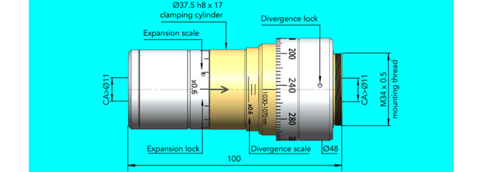 该产品适用于所有三种谐波——红外、绿光和紫外光,并兼容钕激光器和镱激光器。发散角调节机构可提供平滑且精细的发散角调节补偿,而精细调节对于激光加工工艺的微调至关重要。